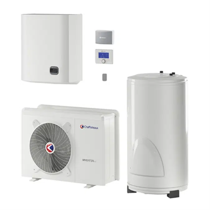 • Pompa di calore inverter monoblocco aria/acqua per riscaldamento/raffrescamento e produzione di acqua calda sanitaria. Bollitore monoserpentino da 180l o 300l con superficie di scambio maggiorata per una produzione di acqua calda sempre efficiente ed estremamente veloce. Vaso d'espansione impianto da 8l sempre integrato di serie nell'unità interna. Circolatore ad alta efficienza per il massimo risparmio energetico. Altissima efficienza anche in climi rigidi e resistenze integrative a 2 o 3 stadi da 2 kW per un comfort assicurato, in ogni situazione. Sempre connessa grazie al Gateway di serie, con controllo remoto e monitoraggio dei consumi per una zona di temperatura. Gestore di sistema Sensys e sonda esterna per la termoregolazione sempre inclusi di serie. Funzione fotovoltaica per sfruttare al meglio l’energia autoprodotta. COP elevatissimo, fino a 5,15 in condizioni nominali. Estrema silenziosità, con una potenza sonora nominale dell'unità esterna fino a 58 dB(A). Funzione fotovoltaica per sfruttare al meglio l’energia autoprodotta. Per i testi di capitolato completi (per ogni versione), si rimanda al sito CHAFFOTEAUX (v. collegamenti)
