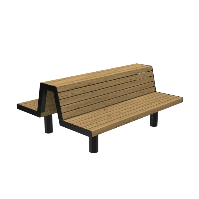 Värme genom träribbor i sits och rygg. Hållbarhet och kvalitet genom medvetna materialval och dimensioner. Cirkularitet genom komponenter som enkelt kan bytas ut.