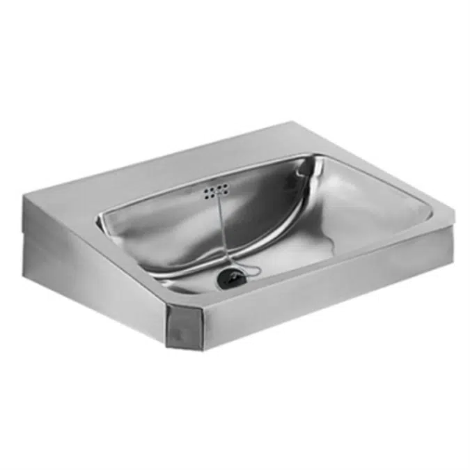 Single wash basin for wall mounting, stainless steel, surface satin finished, material thickness 1 mm, seamless welded bowl with diameter 550 x 350 x 145 mm, rectangular shape, 90 mm tap ledge, with overflow, 1 1/4" plug waste, drainage rewards centric, front panel with 45° corner edges, prewelded mounting brackets, distance between the centre lines of the fixing holes conform to EN 31, inclusive screws and dowels. Dimensions 600 x 150 x 480 mm (W x H x D)