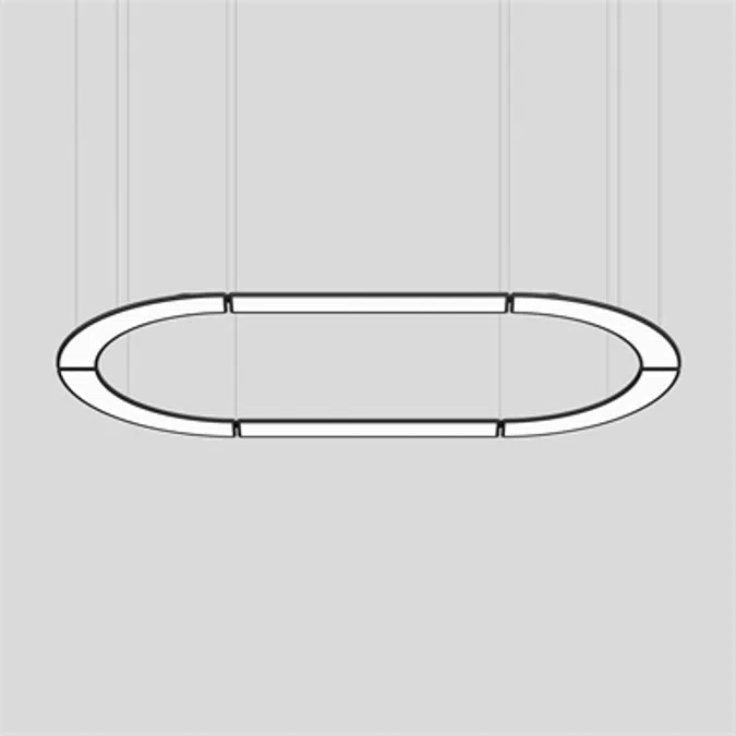 Ring-shaped suspended luminaire, consisting of single elements in quarter circle or rectangular shape; Luminaire housing made of aluminium with rounded edges; ultra low-profile design (only 15 mm); surface powder coated; cable suspension, tool-less height adjustment; convenient quick mounting system without tools; incl. transparent feed; direct light distribution by LGP body (Light Guiding Prism); side coupled light directed downwards by laser engraving; indirect light component with special PCBs for increased luminous flux and maximum ceiling illumination; completely homogeneous illumination; energy-efficient LEDs with very good colour rendering; canopy for through wiring; optional acoustic elements available