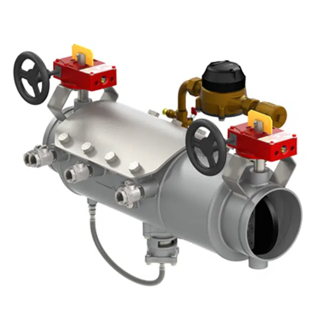 Ames Deringer™ 50X and 50GX Reduced Pressure Detector Type II Assemblies are designed to prevent non-health hazard pollutants and hazardous contaminants from entering the potable water supply system caused by backpressure and/or backsiphonage conditions. Deringer 50X features integral Eccentric-seal™ butterfly shutoff valves for a short lay length, XL body and checks for lower head loss, and Dual-action™ checks for high performance at low- and high-flow rates. Deringer 50GX has all of the same great features, but with OS&Y shutoff valves. The Type II bypass is used to monitor unauthorized water usage and is primarily required on fire sprinkler systems.
