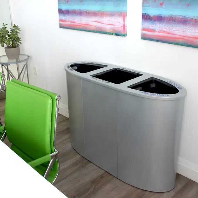 The Pacific recycling & trash receptacle provides an attractive, modern and efficient all-in-one solution for public space waste & recycling collection. The Pacific is ideal for corporate offices, malls, university campuses, and other environments where ruggedness, maintenance ease and efficient use of space are priorities.