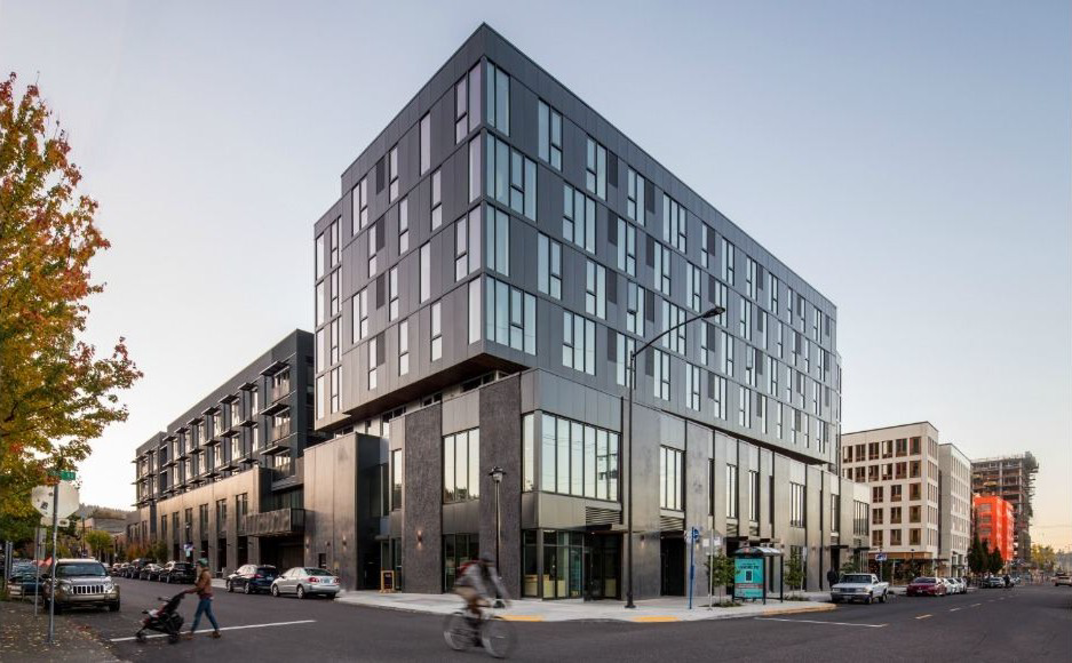 The Q21 in Portland is a 200,000 square foot mixed-use project with retail, office and apartments. Designed by YBA Architects and built by Andersen Construction, the structure includes a 4-story light-steel framed building and two 3-story wood frame buildings, all connected and placed over 2 and 3-story concrete podium.