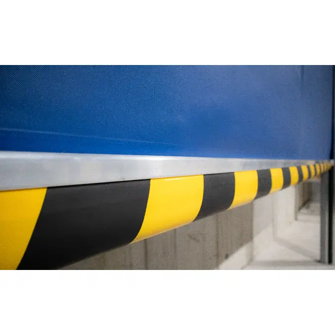 Porta de enrolar rápida, constituída por guias e cabeça em aço lacado. Chapa de PVC reforçado, guiada com sistema anti-derrapante, possibilidade de escolher a chapa para estações de soldadura. Painel de controlo com contacto de segurança de porta fechada (SIL3). Segurança activa por meio de barreiras fotocélulas.