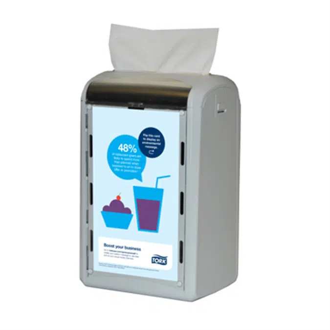 The Tork Xpressnap® Countertop Napkin Dispenser, ideal for limited service restaurants that offer napkins at a central location. This modern dispenser delivers napkins one-at-a-time, improving hygiene and reducing napkin  waste by up to 49%, when compared to traditional dispenser napkins systems.