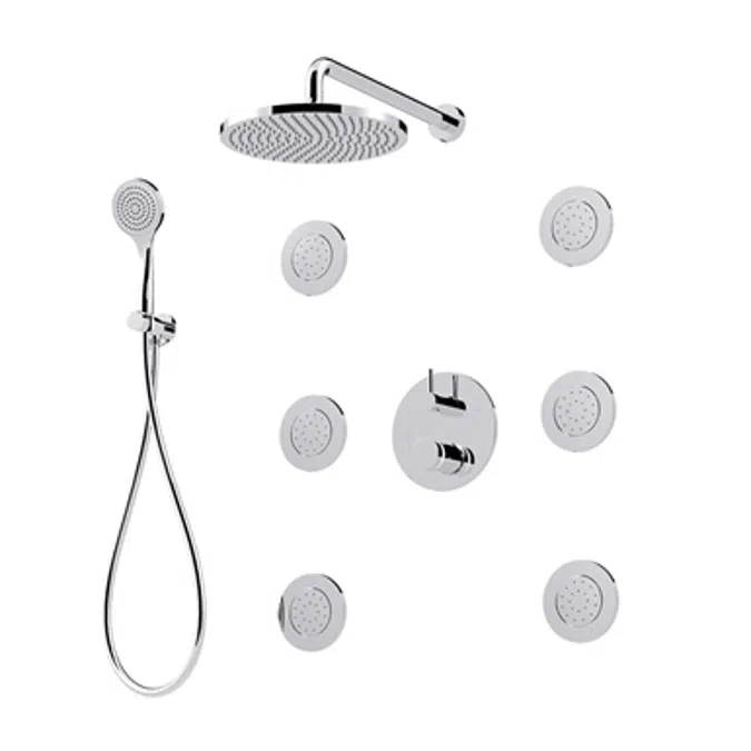 3 outlets built-in single-lever shower mixer, brass shower head, built-in duplex shower kit, 6 built-in body sprays. MyRing is the new proposal by GIULINI G. Rubinetteria, designed by Gianluca Paludi. A collection that merges shapes with substance, leaving space for creativity and originality. An innovative concept that remains an open door ready to welcome your dreams, starting from the choice of your personal touch of colour that not only turns into the star of the bathroom, but which is also unique and exclusive, because it is only yours: this is MyRing. MyRing is available in Chrome, Color and Varnished Parts.