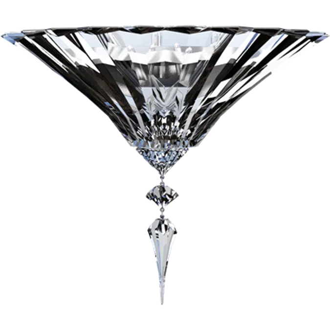 This wall unit takes up the central bevelled cut half cup from the Mille Nuits chandelier and is embellished with an hexagonal bead and a prism.