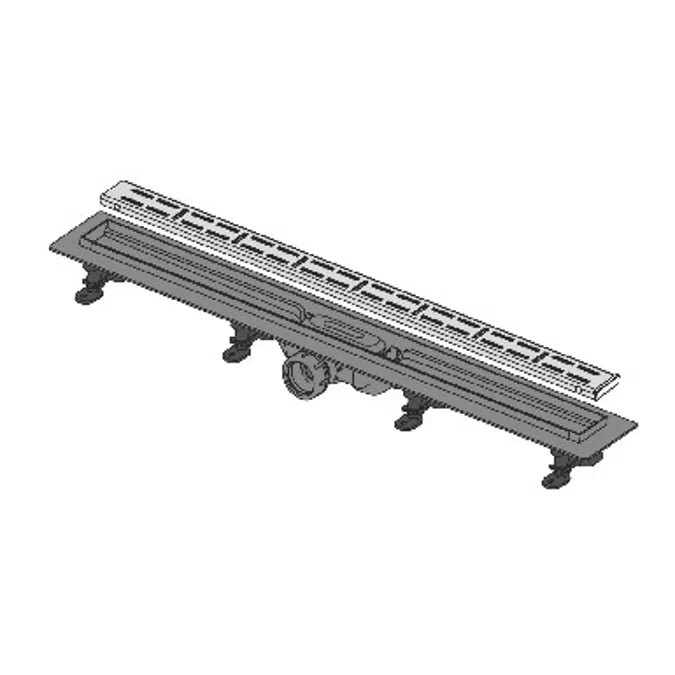 Linear drain and covering plate kit. Horizontal outlet. For built-in showers.