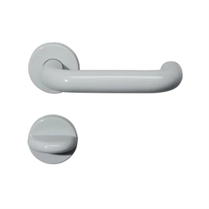 Lever handle model 111.23R U-shaped made of high-quality polyamide or matt polyamide with corrosion resistant steel insert, solid colour, diameter 23 mm, with stepped shoulder guide and groove, easily installed by latching the lever handle into the base parts pre-mounted on the door.