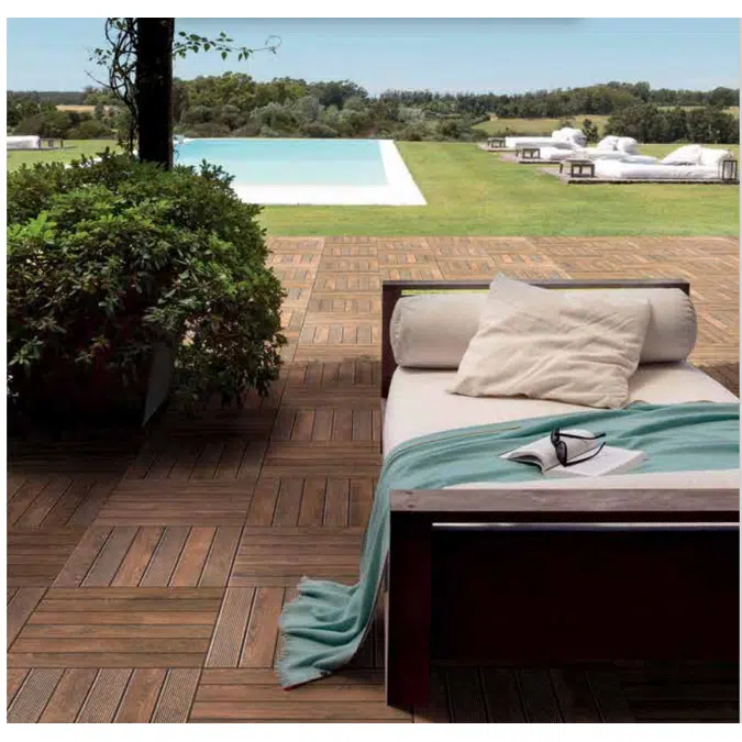 The Deck series floor tiles add a brand new touch to living spaces by transferring the color and texture of wood onto ceramics. This series, which can be used for both interior surfaces and all exterior surfaces in places like residences, hotels, offices, cafés and restaurants, is composed of tiles that have a self-jointed structure, matte and glazed granite features and 45x45 cm dimensions. Available in maple, walnut and cherry tree color options, the series brings the natural look of wood
