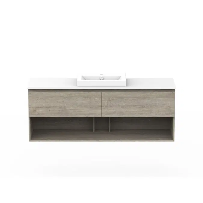 Posh Domaine 1500mm Wall Hung Vanity Unit All-Drawer Open Shelf Single Bowl Cherry Pie Top (no basin)