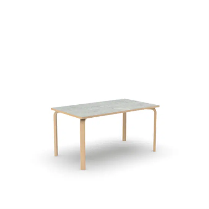 Bord Fia är ett enkelt bord med böjträben i björk, ingen sargkant. Borden har ljuddämpande yta av svanenmärkt Linoleum Marmoleum Decibel, ett naturmaterial utan PVC. Skivan går även att få med runda hörn.