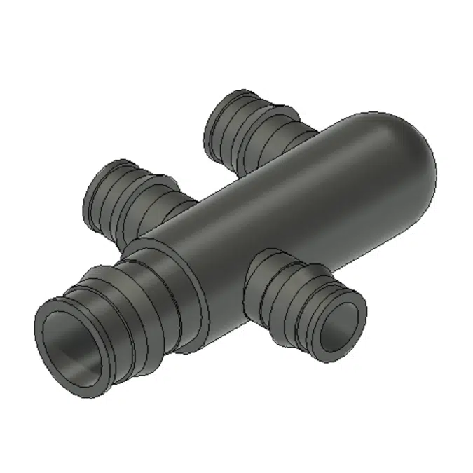 Engineered polymer (EP) branch opposing-port multi-port tees feature a ¾" ProPEX® inlet with opposing ½" ProPEX branch outlets. These are designed for a central location to facilitate piping in two directions. Note: Temperature and pressure ratings stated are hydrostatic ratings. For domestic hot-water (DHW) and DHW recirculation installations, operating conditions should not exceed 140°F (60°C) at 80 psi (5.5 bar) in accordance with ASTM F2023. For additional information regarding application specific temperature and pressure ratings, refer to the Uponor PEX Piping Systems Design and Installation Manual.