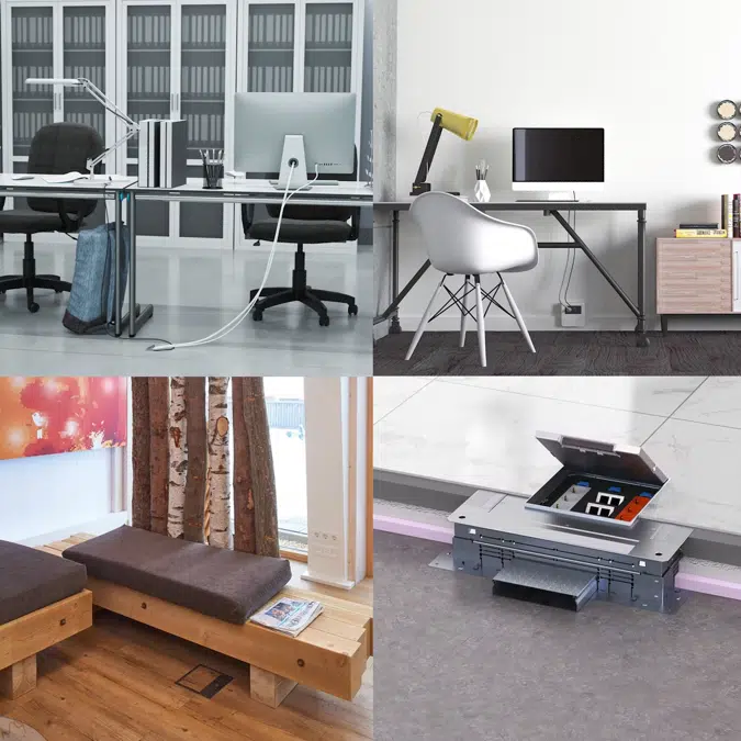 Kanaler och kontorsinstallationer som säkerställer att du får alla energi- och dataanslutningar säkert och snyggt på rätt plats i harmoni med användaren.