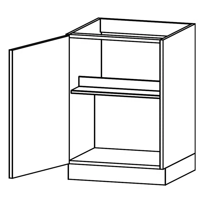 Handtagslöst diskbänksskåp med en rostfri hylla, sidohängd lucka