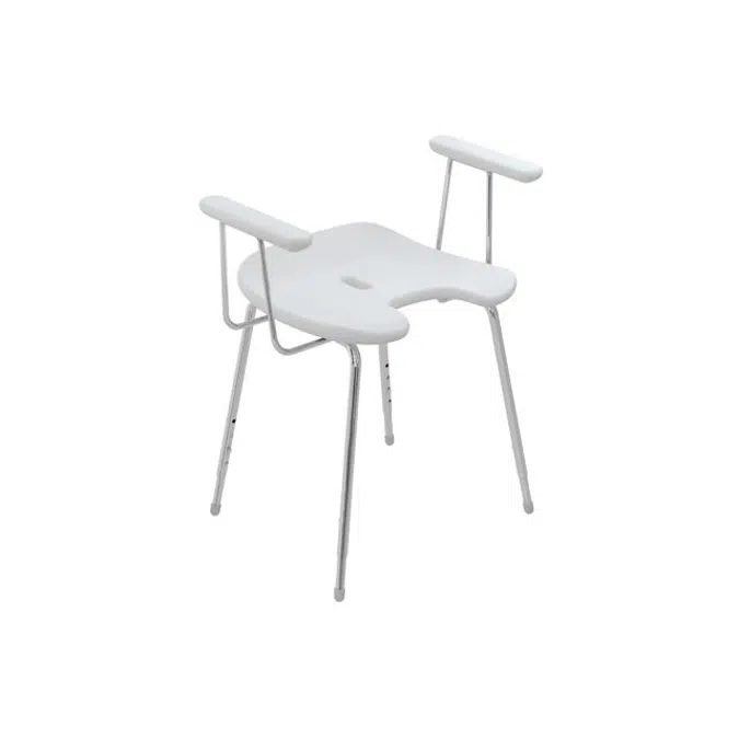 Range 802 LifeSystem shower stool Comfort - strong, ergonomically shaped stool - with lateral support handles with ergonomic grip pads - used for safe sitting in the shower area - seat weight capacity up to 150 kg - 648 mm wide, 705 mm high, 450 mm deep - seat 452 mm wide, 450 mm deep - net weight: approx. 8.4 kg - Seat surface and grip pads made of high-quality PUR/Integral hard foam in HEWI colours 98 (signal white, matt) and 92 (anthracite grey, matt) - seat with hygienic opening and water run-off - four high-polished chrome height-adjustable steel legs with non-slip feet - seat height adjustable to four levels from 420 mm to 510 mm (every 30 mm) - CE-marking according to directive 93/42/EEC