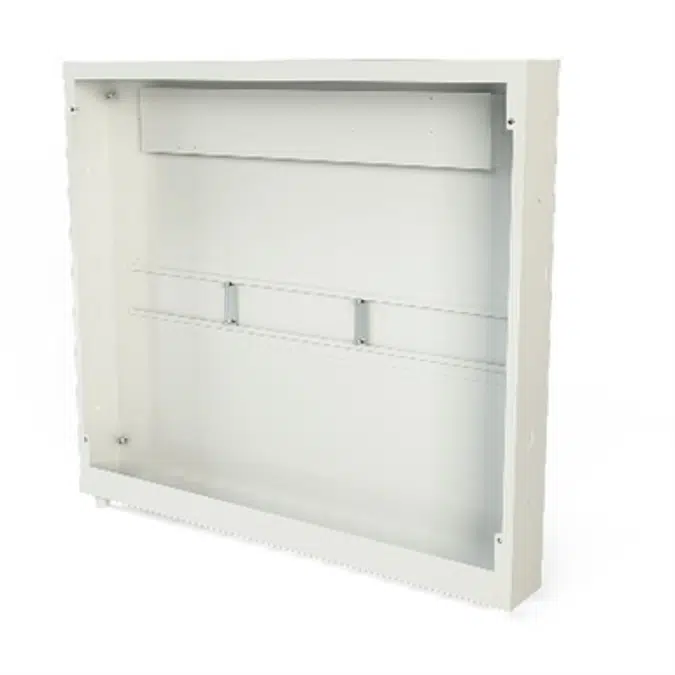 • LK Manifold Cabinet UFH is designed for use where there is a requirement to conceal LK Manifold RF. The cabinet has a dense base with rubber pipe grommets. The cabinet base is provided with a drainage opening which allows any water leakage to be drained to a location which can be inspected. The cabinet is manufactured from 1 mm powder-coated sheet steel, RAL 9016. The cabinet is designed for installation built into a wall or surface-mounted on a wall. When building in the cabinet, the minimum stud thickness is 95 mm. The cabinet must be supplemented with a frame/hatch. There are two types of frame/hatch, depending on whether the cabinet is built into or surface-mounted on an inner wall. When surface-mounted, the cabinet must also be supplemented with a base in order to conceal pipes between the cabinet and the floor. LK Manifold Cabinet UFH is supplied with pipe grommets, a bellow sleeve for drainage, a 1.5-metre conduit for drainage, drainage elbow with outlet plate, cable grommets for room control, spray guard and installation instructions. The back of the cabinet is provided with four prefitted M8 nuts which can be used for attachment to the LK Cabinet Stand when the cabinet has to be installed before a concrete base is cast. The ends of the cabinet are provided with knockout holes for any side connection of supply and return pipes. The top side of the cabinet has knockout holes for any pipe routing through the cabinet and knockout holes for any cable grommets for room control.