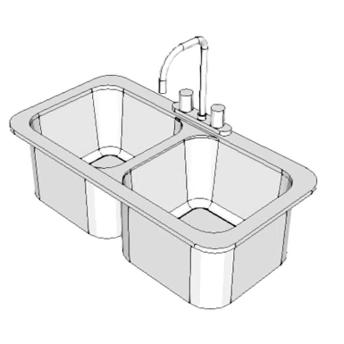 Double compartment stainless steel sink, drop-in, self-rimming, ledge-type, connected with a drain and provided with a mixing faucet. It shall also be provided with pre-punched fixture holes on 4" center, integral back ledge to accommodate deck-mounted fixtures, brushed/polished interior and top surfaces, and sound deadened. Recommended for use in suspended or U/C/B sink cabinets having a high plastic laminate or Chemsurf laminate countertop/work surface. Coordinate actual outside sink dimensions with the actual clear dimension of cabinet specified to ensure that they are compatible. For general purpose use throughout the facility.