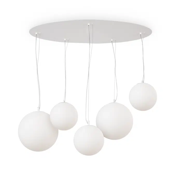 Fittings material — metal, shades — gold, white, black. Rounded dome lamps made of frosted white glass. Versatile shapes, minimalistic design. E14 base. Lamps are not included. Adjustable height of pendant lamps.