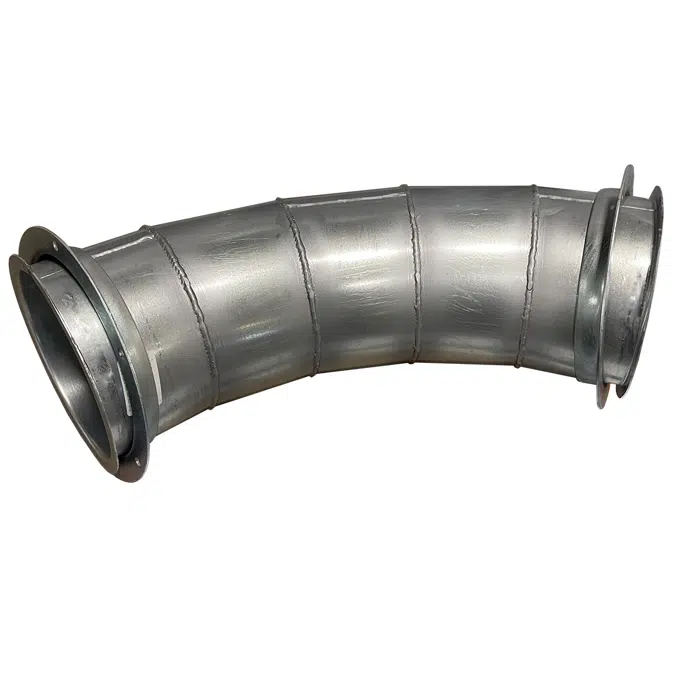 Our Flanged Long Radius Elbows (bends) allow airflow direction change in a line of dust collection ducting. Elbows are standard with Angle Flange (ANGFL) ends. Angle Flanges are attached loosely and retained via a vanstone lip.