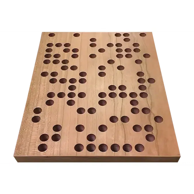 The ExpoTM Standard Panel is the ultimate synergy between acoustical technology and architectural panel design using an optimal binary pattern of round perforations. They are available in a high recycled content, ULEF, Class A fire-rated ULEF, and FSC® certified wood panel MDF core with an optional black fleece backer. The ExpoTM Standard Panel achieves an excellent balance of sound absorption across the NRC frequency bands while preserving the space’s ambiance with high-frequency diffusion.