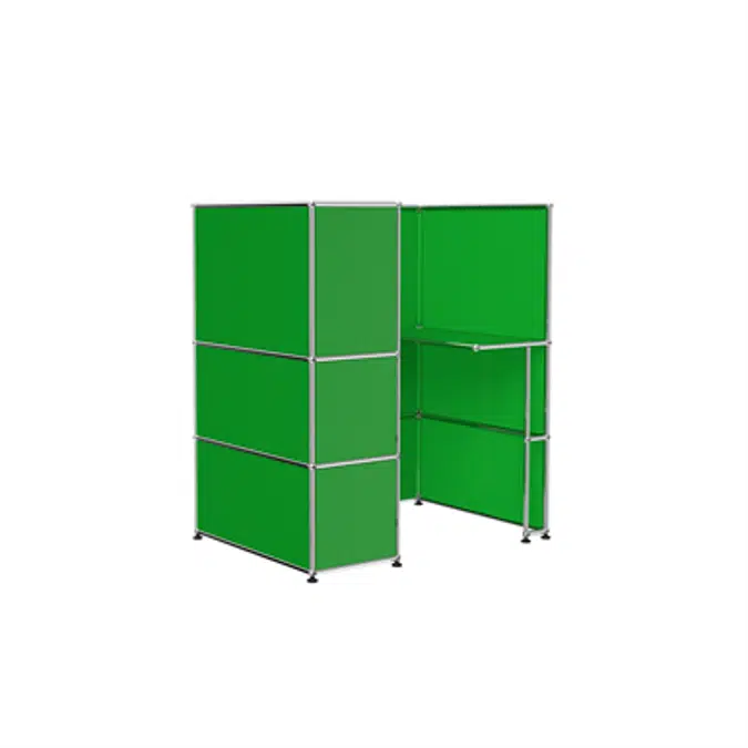 Available in 15 colours : pure white RAL 9010, light gray RAL 7035,USM matt silver, mid-gray RAL 7005, anthracite RAL 7016,  graphite black RAL 9011,steel blue RAL 5011, gentiane blue RAL 5010, USM green, golden yellow RAL 1004, pure orange RAL 2004, USM rubis red, USM brown, USM beige and olive green RAL 6003.